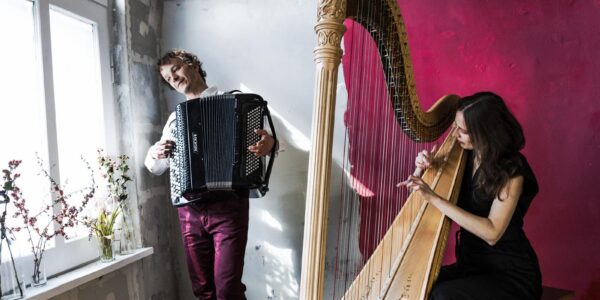 Musikalisch lauschen wir in der Petrikirche Herford, dem Harfe-Akkordeon Duo Oxymoron, die ein virtuoses Klanguniversum aus Jazz, Klassik und zeitgenössische Spieltechniken erschaffen – wie in den Texten, verbindet sich hier Altes mit Neuem, Helles mit Dunklem.